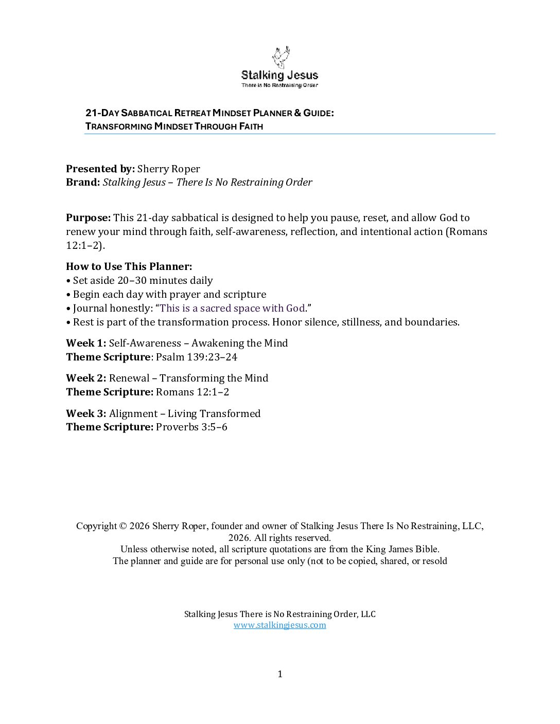 📓 21-Day Transforming Mindset Sabbatical Planner